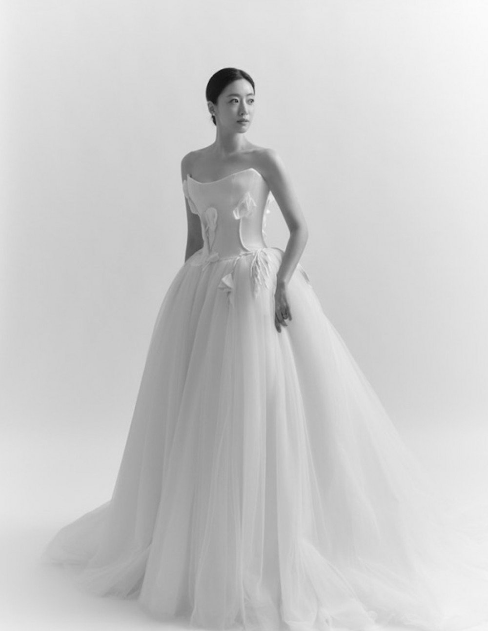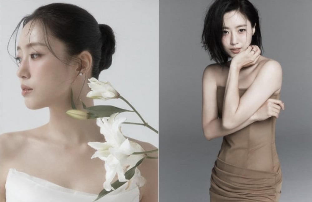 Other shots from the pictorial highlight Hahm Eun Jung’s versatile charm. In one image, she exudes chic sophistication in a beige-toned tube dress, while another captures her pure and graceful aura in a pristine white wedding gown with styled hair.