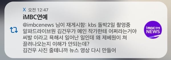 Then, some time on February 21 KST, these fans noticed iMBC News retweeting such a complaint comment underneath its own article.
