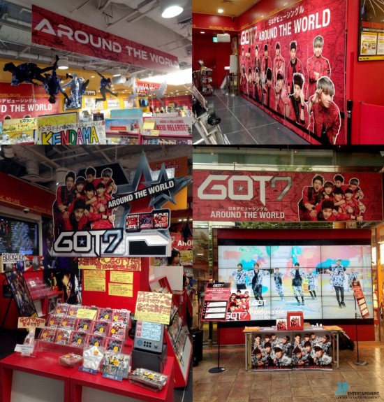 To celebrate their debut, promotional posters for GOT7's new album were posted all over the Tower Records store in Shibuya, Japan.