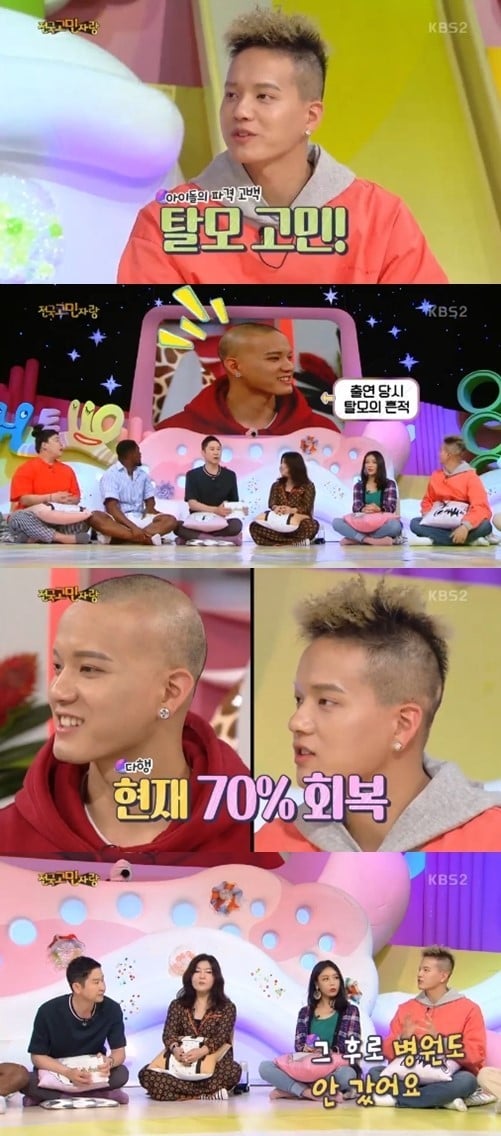 Peniel shared that he gained tremendous attention after revealing his sufferings with hair loss on the show. He then said, "I've recovered about 70%. I haven't been to the hospital (since the last time I was on the show)," and stated sharing his concerns on the show helped him a lot.