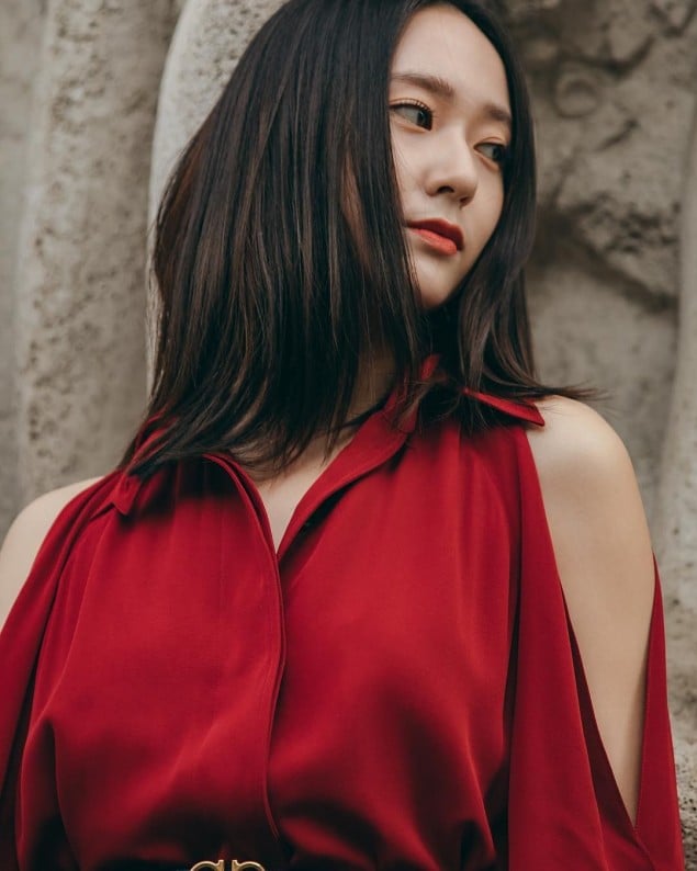 On September 22, Krystal attended 'Ferragamo' 2019 S/S collection show in Milan. The idol star showed up in a gorgeous red one-piece dress with sexy slits on the arms and legs. She matched a chic black belt, clutch, and boots to perfect the outfit. Her hair and makeup were kept simple.