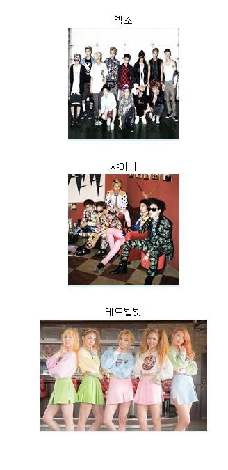 On popular community board sites, a post asked, "The idols you think of first at SM, YG, and JYP?" The following are the idol groups that were listed: