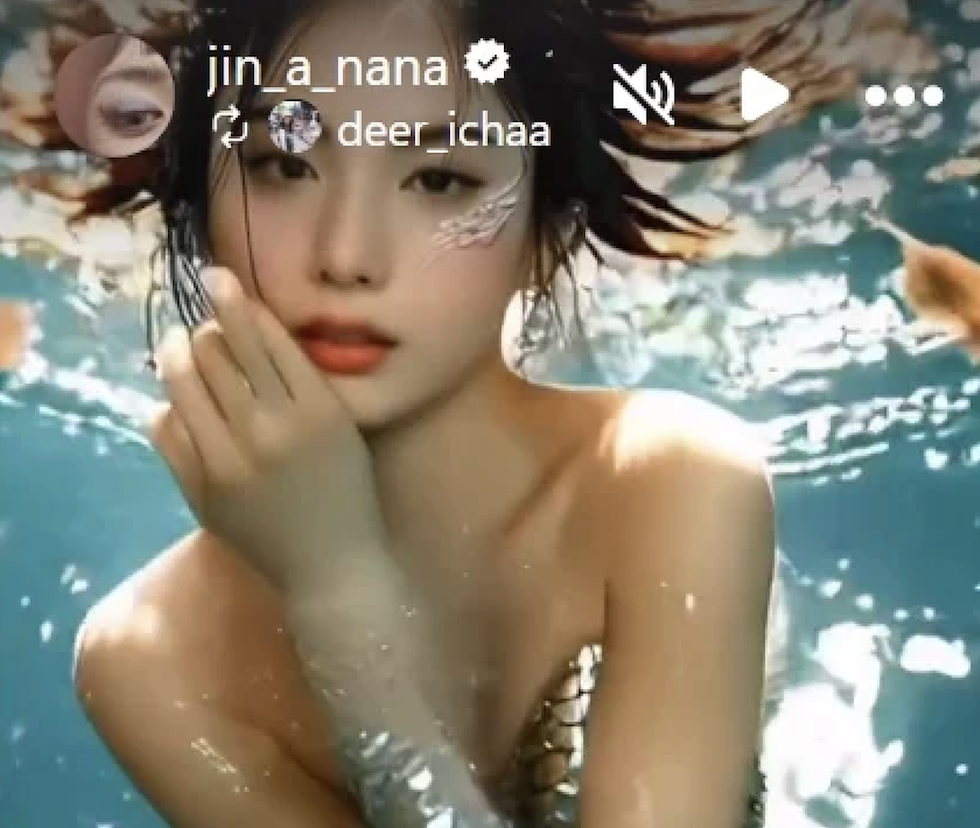 On June 8, Nana shared a short video clip to her Instagram Story without any caption. In the video, she shows off her enchanting visuals before suddenly diving underwater—where she transforms into a mermaid. The video appears to have been created using AI technology, yet Nana’s graceful and ethereal appearance as a mermaid is strikingly realistic and captivating.