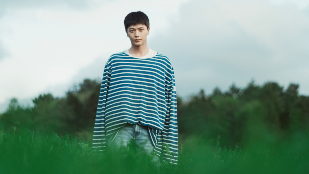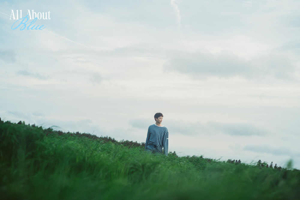On June 7 KST, Sungjae unveiled the second set of concept photos for his forthcoming solo project 'All About Blue,' featuring him in a blue-striped long-sleeved shirt in a grassy field.