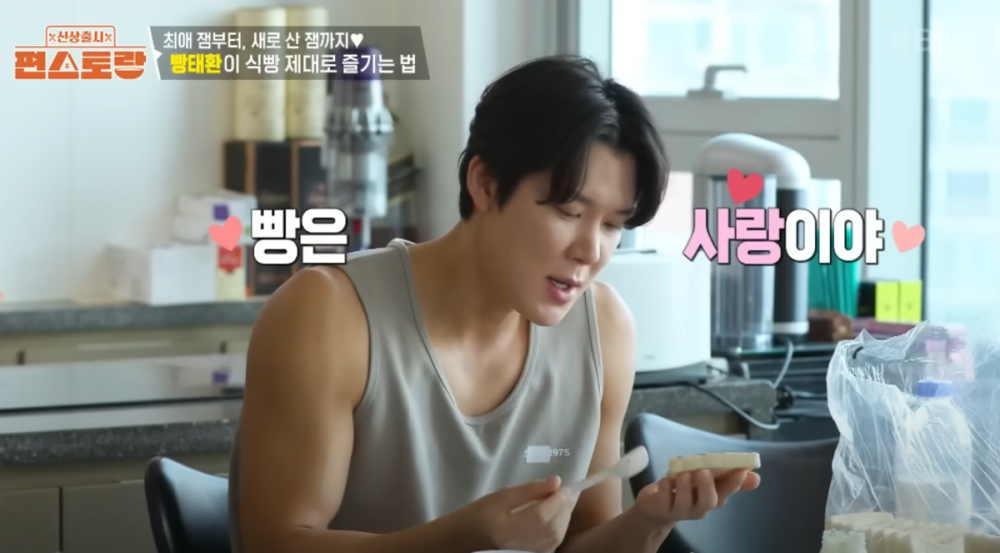 Park began his morning with his trademark headphones and stepped onto a scale, a habit from his athlete days. The scale showed his body fat at just 8.2 percent, surprising everyone. He then began his breakfast routine, starting with slices of plain bread. As he brought out various jams and spreads from his neatly organized fridge, he began to enjoy the bread with different flavor combinations. Known for his love of bread, he even keeps a list of his favorite bakeries.