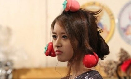Jiyeon's headband and strawberry curlers ("Dream High kids all knew this, right?")