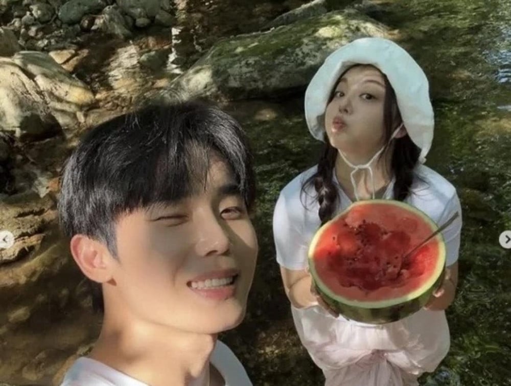 In the photos, the couple is seen enjoying a relaxing day by a valley. Ailee playfully poses with a bowl of watermelon punch, while Choi winks at the camera, clearly savoring the moment.