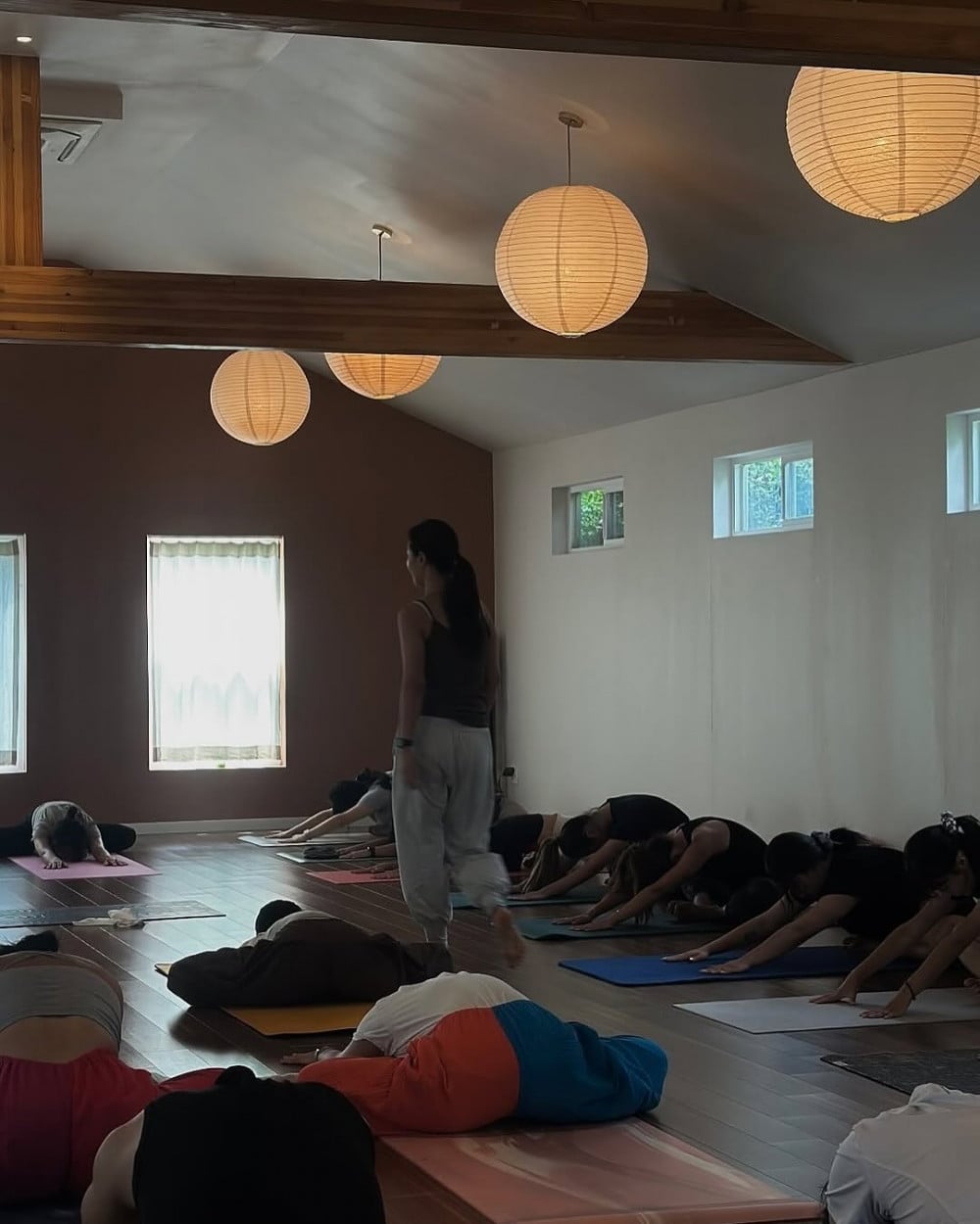 In the photos released from the session, Yuri exudes the presence of a yoga master—demonstrating poses herself and coaching participants with care and confidence.