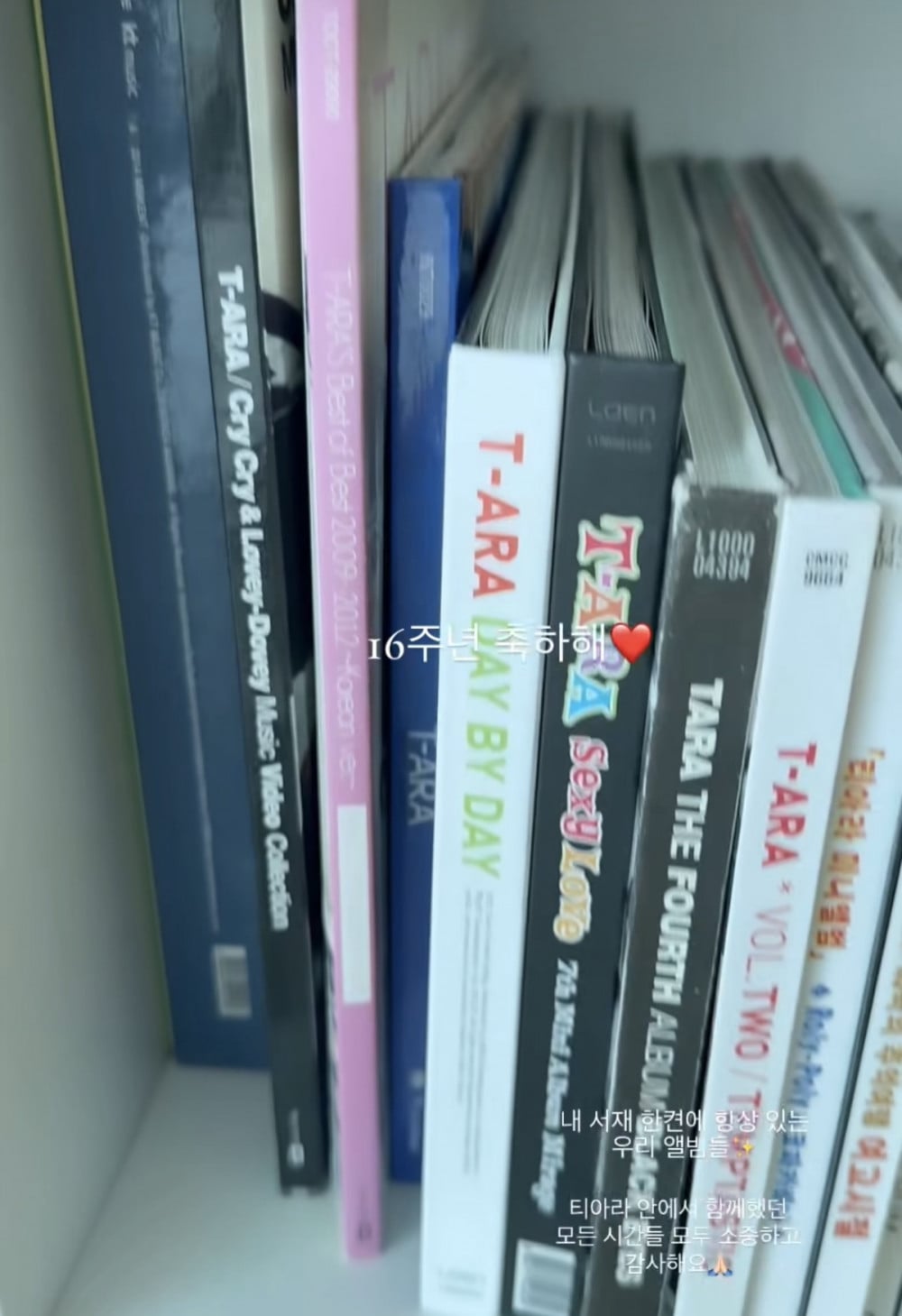 Eunjung shared a photo of her personal album collection and wrote, “Our albums are always kept on one side of my bookshelf. Every moment spent as part of T-ARA is precious and I’m truly grateful.”