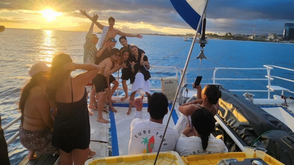 The fan then shared a photo of Seventeen members Jeonghan and Seungkwan and NCT127 members Johnny, Doyoung, Jungwoo, and Mark posing for a scenic sunset photo op on a yacht tour in Hawaii.