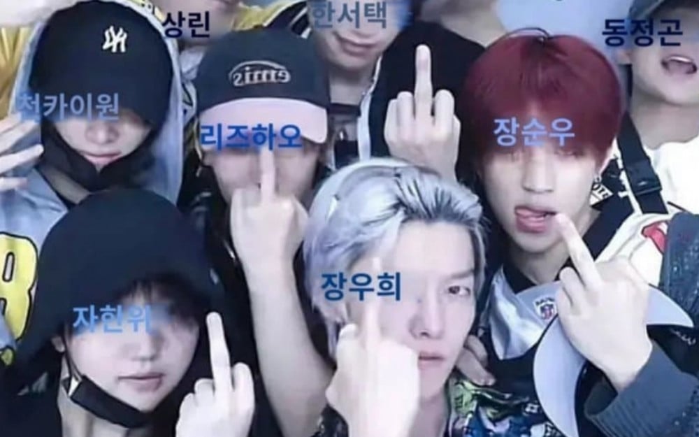 A group of Chinese contestants from 'Boys II Planet' have recently come under fire after a photobooth picture surfaced online showing several of them posing with their middle fingers raised. The trainees identified in the photo include Chen Kai Wen, Li Zi Hao, Sang Lin, and Han Rui Ze, among others.