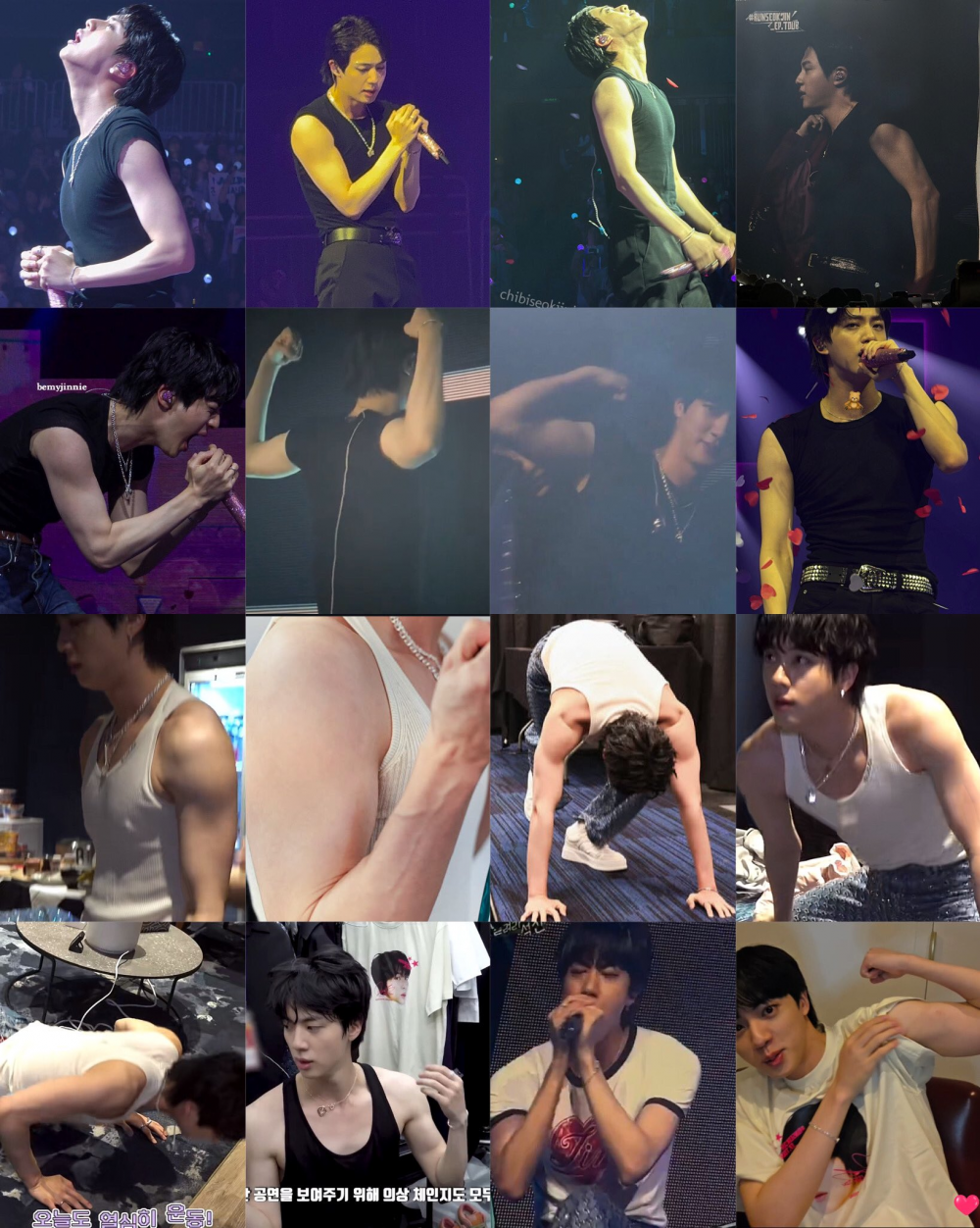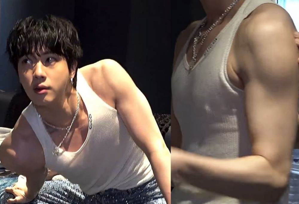 Jin has been a popular topic of discussion among netizens lately, who are now comparing photos of Jin's muscular shoulders and arms. An idol known for his handsome looks and admirable physique, Jin has captured the attention of fans and netizens once again.