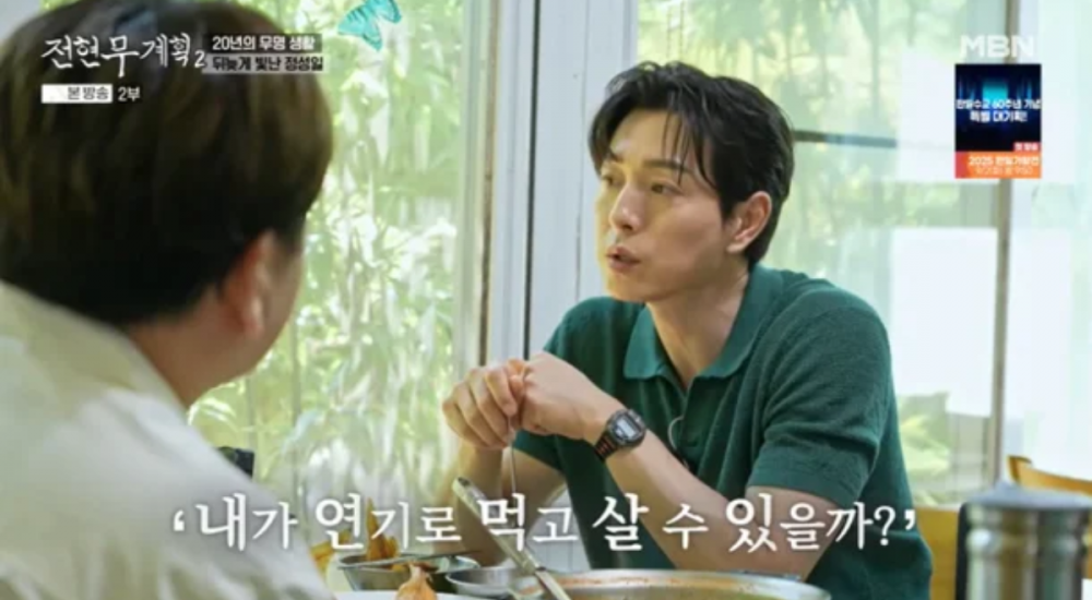 The confession came during the August 22, 2025 KST broadcast of ‘The Jun Hyun Moo Project 2’ on MBN and Channel S. In its 43rd episode, hosts Jun Hyun Moo and YouTuber Kwaktube (Kwak Jun Bin) shared a meal with their guest Jung Sung Il on the “59th street table” of Daebu Island in Ansan. At the time of filming, the actor was preparing for the release of his new film ‘The Murderer’s Report’, and revealed that his weight had recently dropped to 66kg, adding: “I lost both body fat and muscle, so now I’m eating more for my health.”