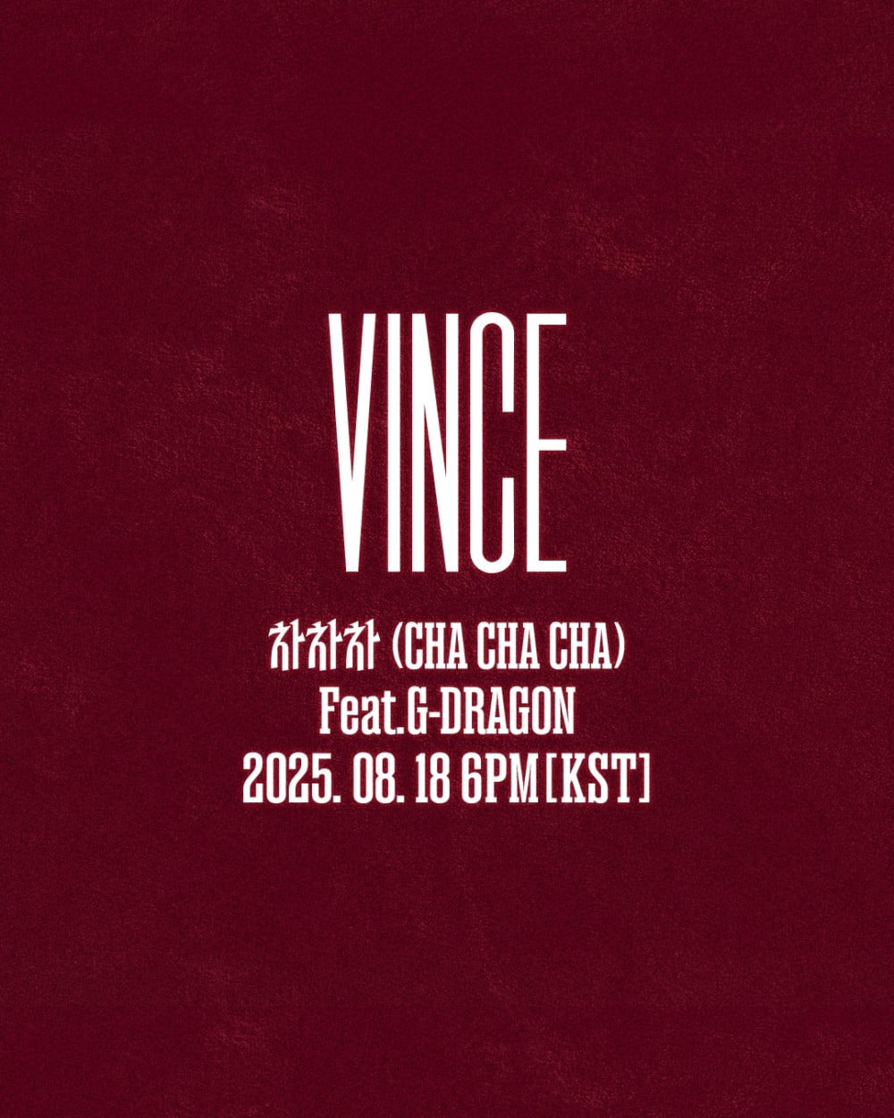 VINCE's digital single "Cha Cha Cha" feat. G-Dragon will be released on August 18 at 6 PM KST.