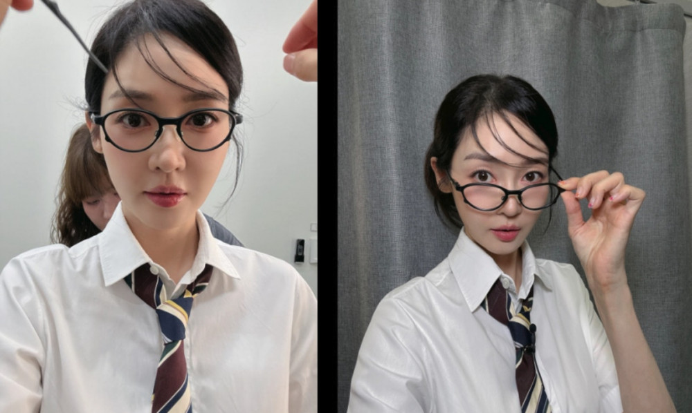 In the released images, Sung Yuri is seen taking a selfie with side-swept bangs, glasses, and a necktie, exuding an adorable high-school-girl charm that has captivated fans.