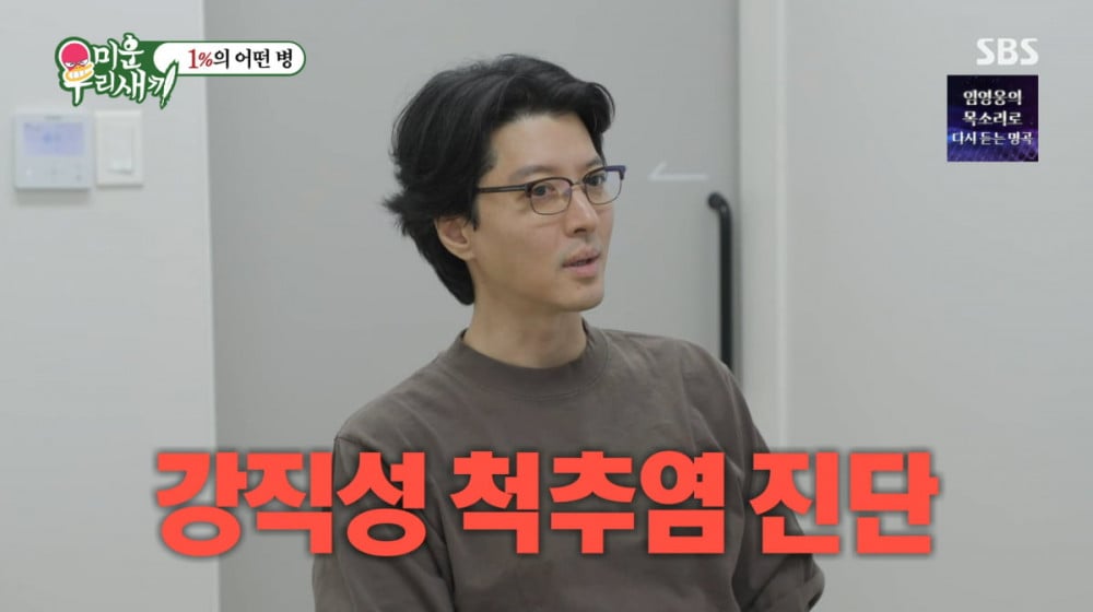On the September 28th(KST) broadcast of SBS 'My Ugly Duckling', actor Lee Dong Gun revealed that he has been diagnosed with ankylosing spondylitis, a rare disease that affects only about 1% of the Korean population.