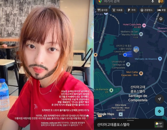 On September 28th(KST), Kim shared a short video on her Instagram, writing, "Today is the last day of the pilgrimage. Since Santiago isn’t far, I’m resting at a café with friends."