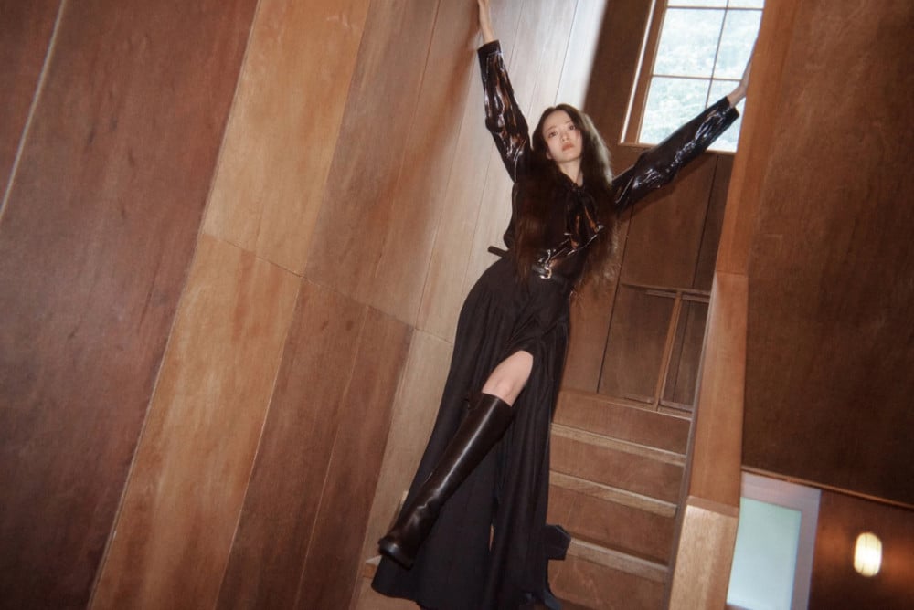The pictorial captures the ever-expanding scope of Chun’s career and identity. In one set of images, she exudes fierce charisma in black knee-high boots and glossy textures, while monochrome shots highlight her effortless and understated charm. Close-up cuts focus on her radiant skin and deep, expressive eyes, reinforcing her quiet but commanding presence.