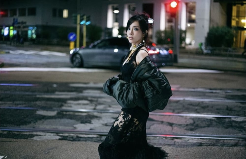 To complete the mix-and-match look, she draped a glossy oversized black bomber jacket over her shoulders. Accessories included layered black bead necklaces and a chain choker, along with bold earrings for extra impact. A leopard-print bag served as a striking focal point, harmonizing with her smoky eye makeup to create a captivating, charismatic aura.