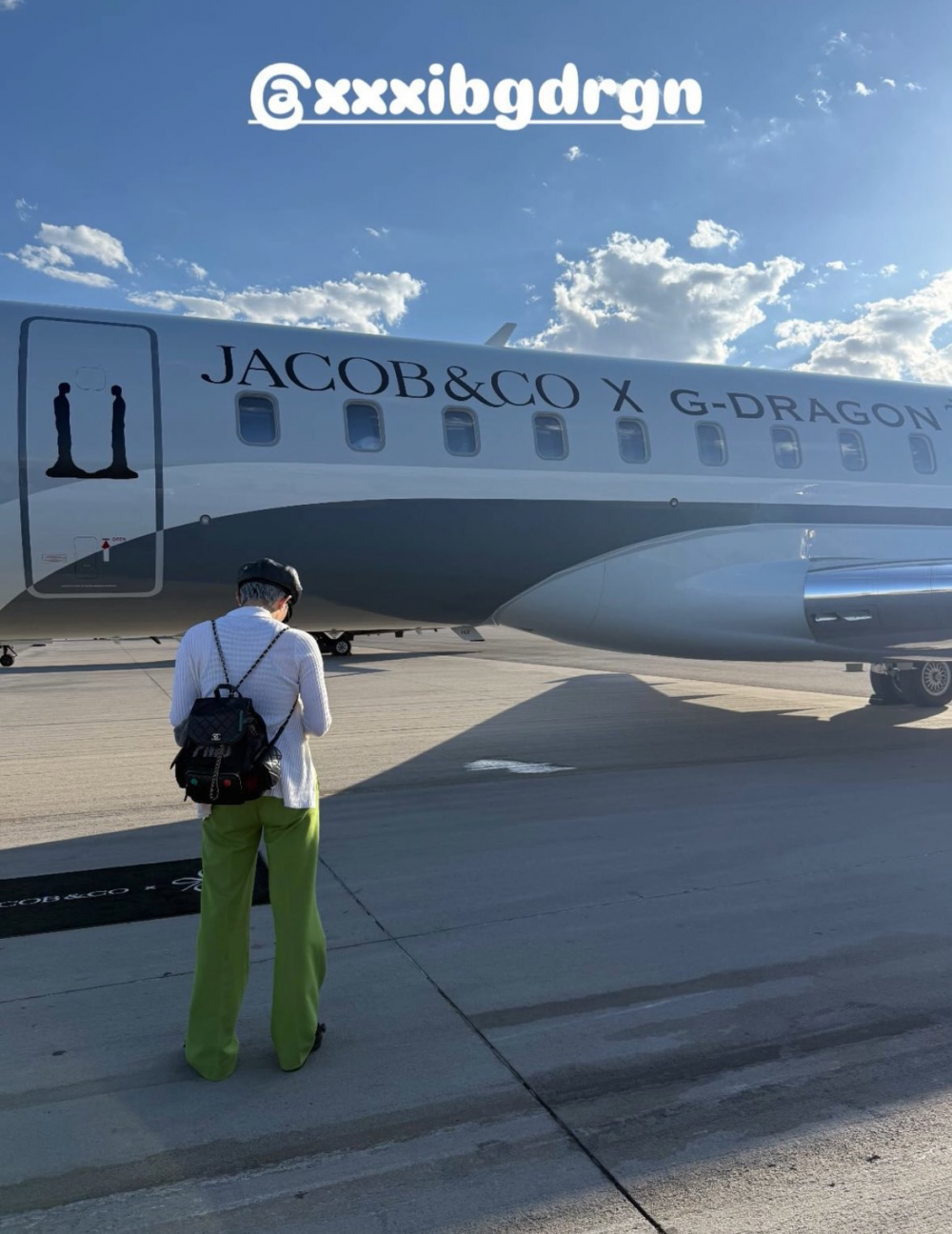 The star’s manager recently uploaded photos of a private jet wrapped in a custom design dedicated to the tour. The private jet was arranged by the jewelry brand Jacob & Co. for G-Dragon's North American wing of his tour.