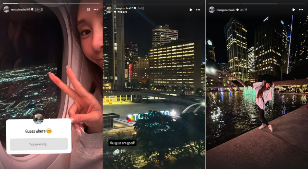 G.NA posted a window-seat selfie on September 20, 2025 with the caption “Guess where”, prompting speculation that she might be heading to Korea after resuming activity on social media. She soon clarified her destination, uploading two nighttime shots from downtown Toronto along with an airport update that read, “You guys are good!”—indicating she had flown to Canada, her home country. Born in Edmonton, Alberta, G.NA debuted in 2010 and rose to popularity with 'I Will Get Lost, You Go Your Way' and 'Black & White'.
