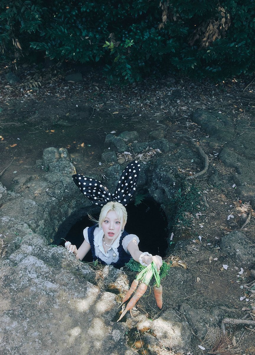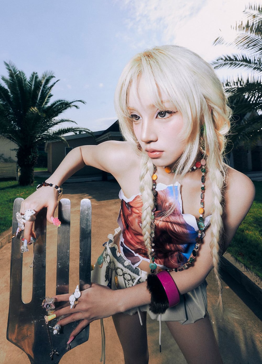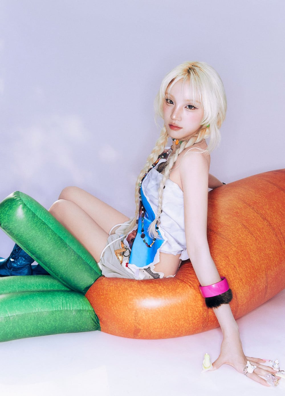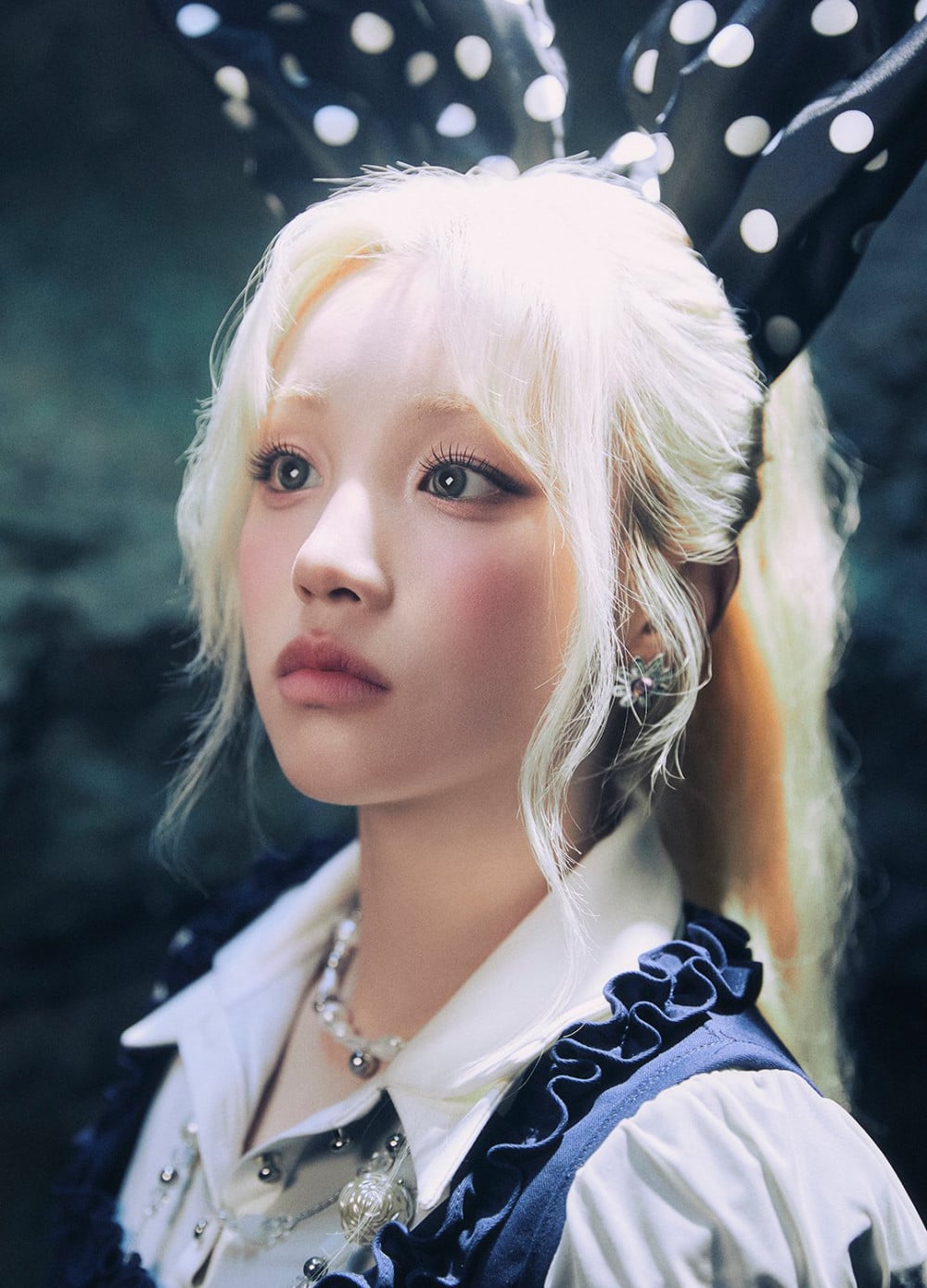 On September 3 at midnight KST, Yuqi released a new set of teaser photos revealing the concept for her solo single 'Motivation.' In the photobook images, Yuqi looks like a doll with blonde locks and shows off a fairytale concept.