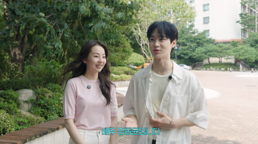 Jang Dong Yoon and Ahn So Hee are both signed under BH Entertainment and were born in 1992, making them the same age. In the video, Jang introduced himself by saying, "I am actor Jang Dong Yoon, the same age as So Hee, and we work at the same company. Hanyang University feels like a second home to me, so it is great to be here."