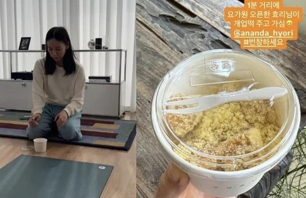 Lee Hyori celebrated the opening of her yoga studio by handing out rice cakes.