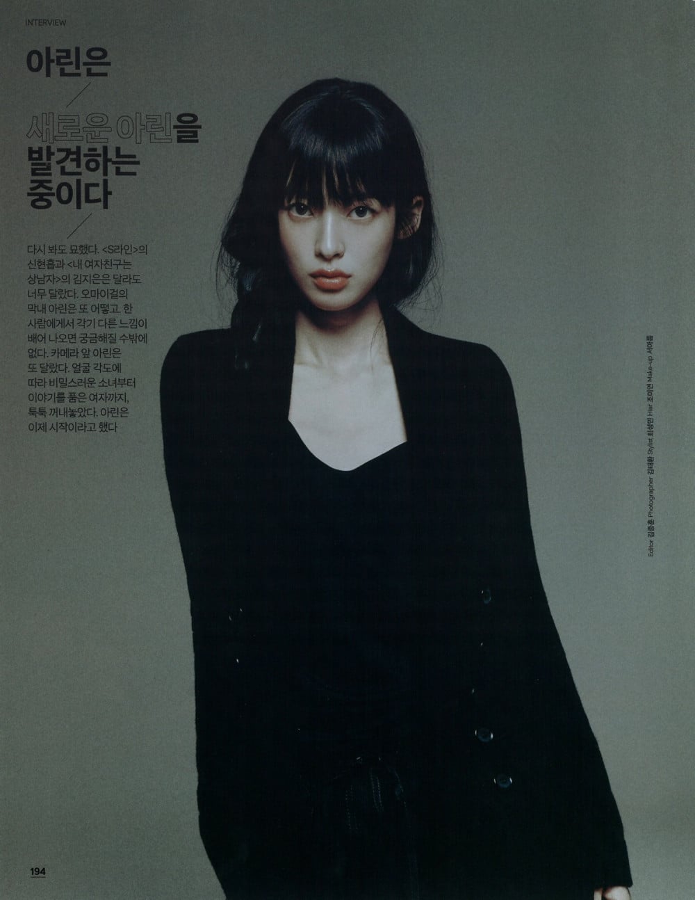 Currently expanding her career into acting with contrasting roles in the dramas 'S Line' and 'My Girlfriend Is the Man', Arin channeled her versatility into the shoot, captivating the staff with a wide range of expressions. From the tilt of her head to the subtle shifts in her gaze, every frame revealed a different facet of her charm.