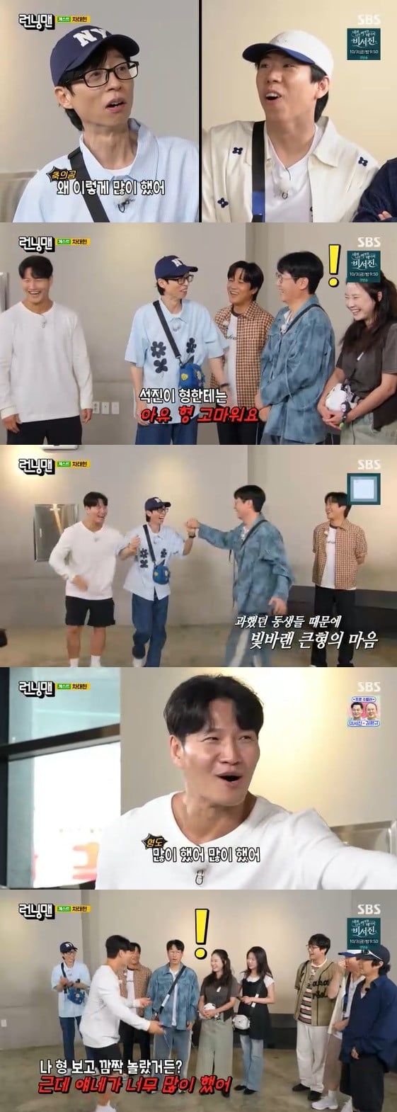 Kim Jong Kook admitted, "That’s true. Yoo Jae Suk even hosted the ceremony but still gave way too much," agreeing with a laugh. Yoo Jae Suk continued, "But when it came to Ji Suk Jin, he only said, 'Thank you, hyung,'" sending the studio into laughter.