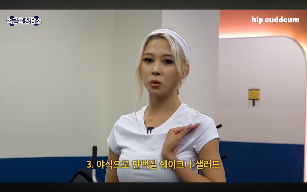 Later on, while taking a break from the workout routine, Dayoung described her strict diet. She said, "I cut down my food intake to 1/10 of my usual. And then the closer I got to the MV shoot, I drank one protein shake for breakfast + lunch, spent all day practicing singing on the treadmill and dancing, and ate a salad for dinner. If I wanted it, I drank another protein shake as a late night snack. But if you do it like that, it kills your immune system. So I drank vitamin-infused lemon water every day."