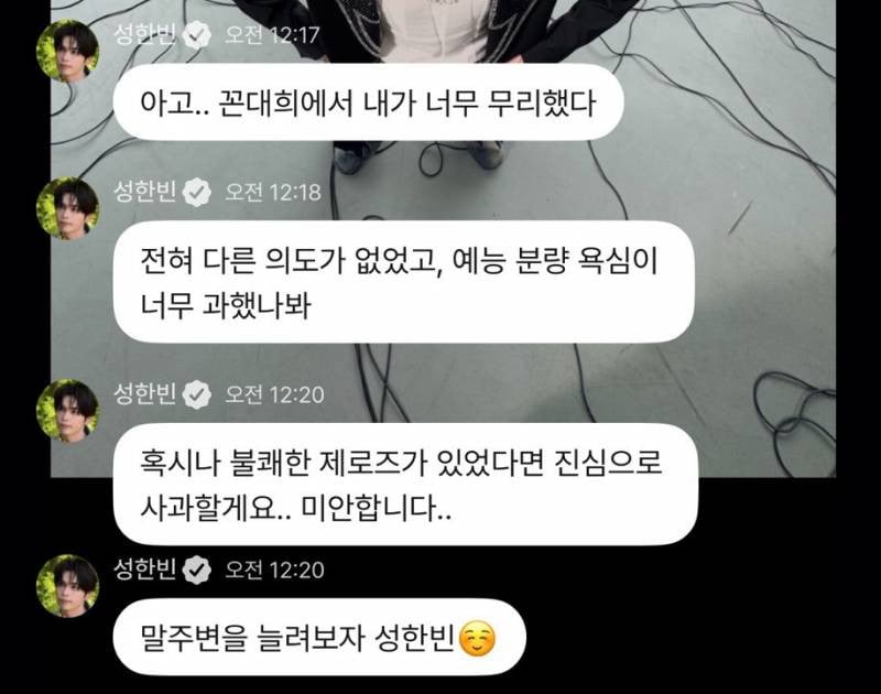After the episode aired, the segment drew negative responses online. Later, on a fan communication platform, Sung Han Bin posted a personal apology: “Oh no, I went too far on ‘Ggondaehee’. There was absolutely no bad intention, but maybe I tried too hard to get more variety content. If any ZEROSE felt uncomfortable, I sincerely apologize. I’m sorry. I’ll work on expressing myself better.”