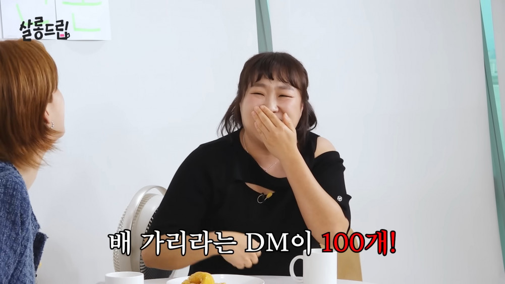 Impressed, Jang Do Yeon went on to ask playfully, "I heard the secret to your success recently was your revealing outfits." Lee Soo Ji then confessed, "Actually, a lot of men DM me." Then went on to reveal, "To be honest, only one man DMed me (with praise) and 100 DMs were telling me to cover my belly," making the staff laugh.
