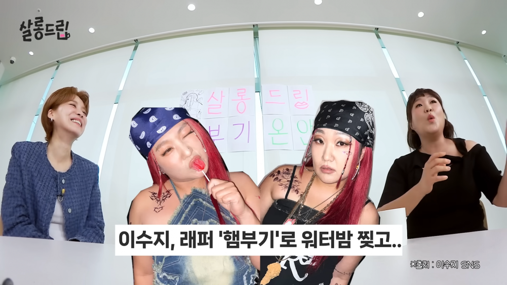 During the talk show, Jang Do Yeon asked whether Lee Soo Ji is asked to appear on different shows as different characters she has created over the years. Lee Soo Ji replied, "Yes, there are. They ask me to come as 'Hamboogie' (a rapper persona recently created by the comedian). So, I actually created a song 'Sexy Food' as Hamboogie."