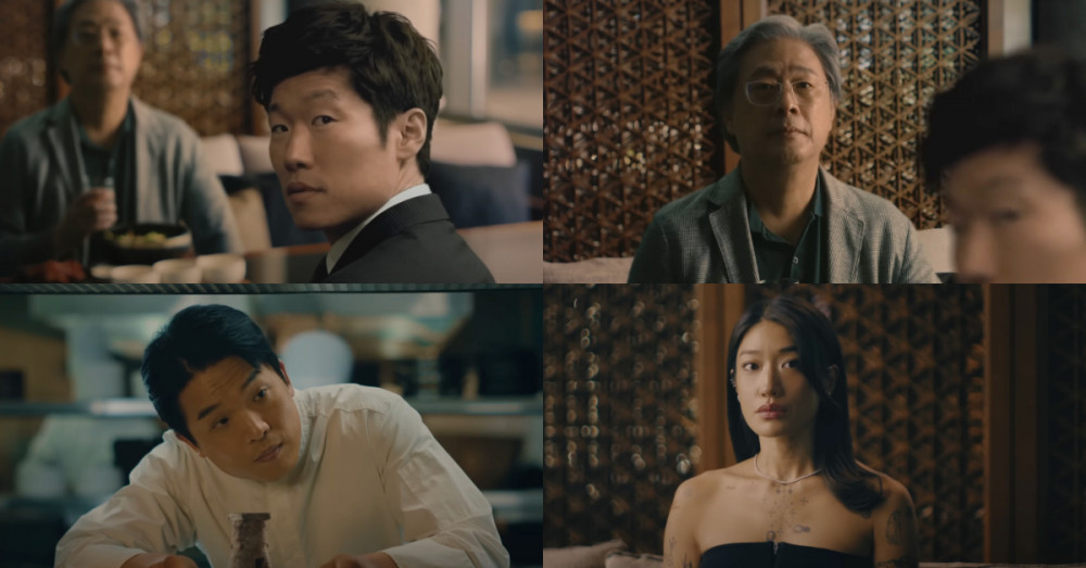 The 74-second video opens with G-Dragon, dressed in a pilot’s uniform, walking into a restaurant where Park Chan Wook and Park Ji Sung are dining. Peggy Gou, sipping tea nearby, looks on as he enters.