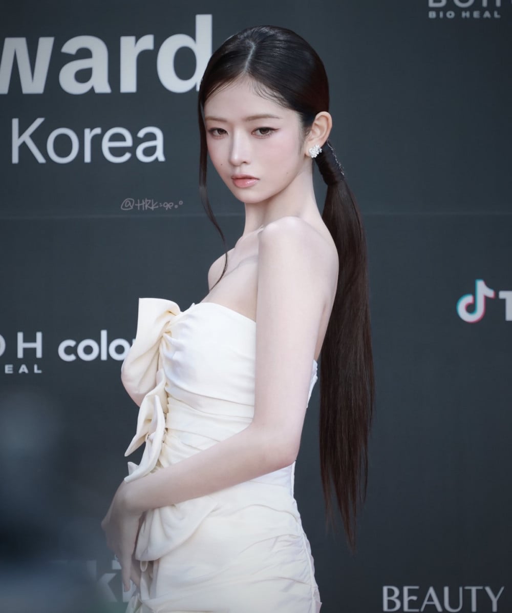 Rei, who received the Best Trend Leader award during the event, was seen backstage in an elegant off-shoulder dress. Her ensemble featured a voluminous ribbon detail paired with a neatly tied low ponytail, amplifying a sense of refined sophistication. The look was widely praised for balancing youthfulness with graceful maturity.