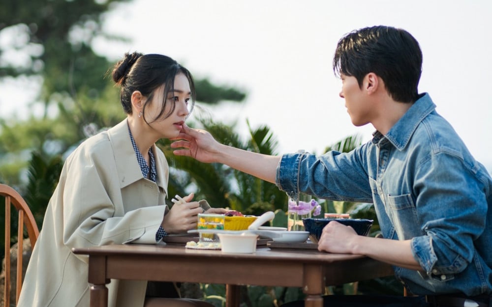 In the released stills, Jang Ki Yong and Ahn Eun Jin sit back-to-back in a location with a strong vacation vibe, showcasing picture-perfect visuals under the warm sunlight.