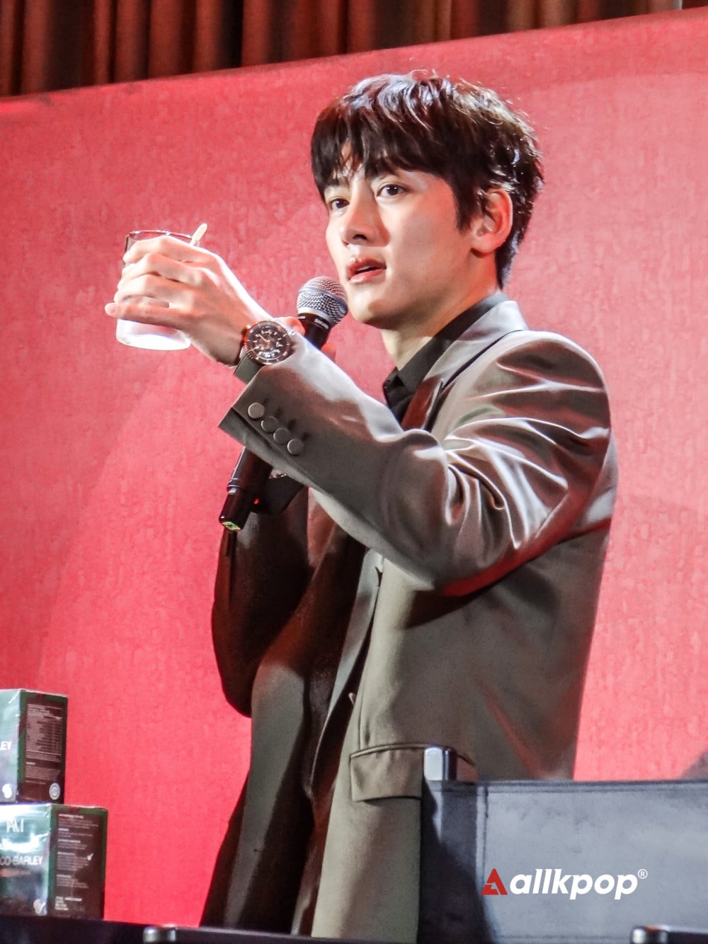 During the event, Ji Chang Wook made a grand entrance in a sleek, green leather jacket, revving a motorcycle he rode in place on the stage.