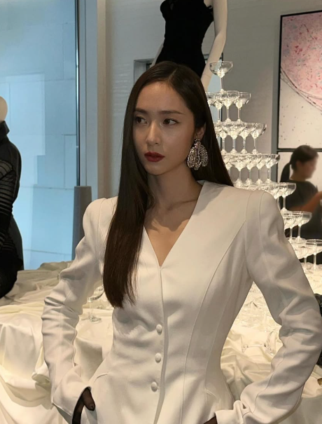 The released photos showed Krystal attending a clothing brand event. In the images, she posed in front of a table at the venue and beside displayed mannequins.