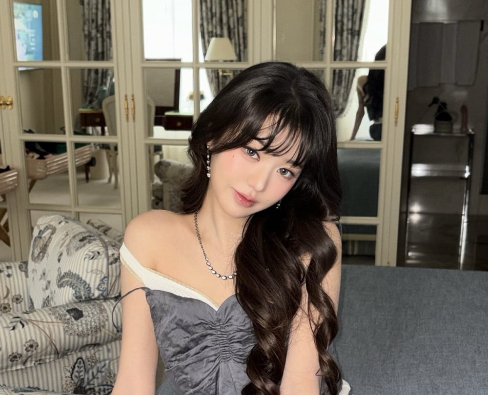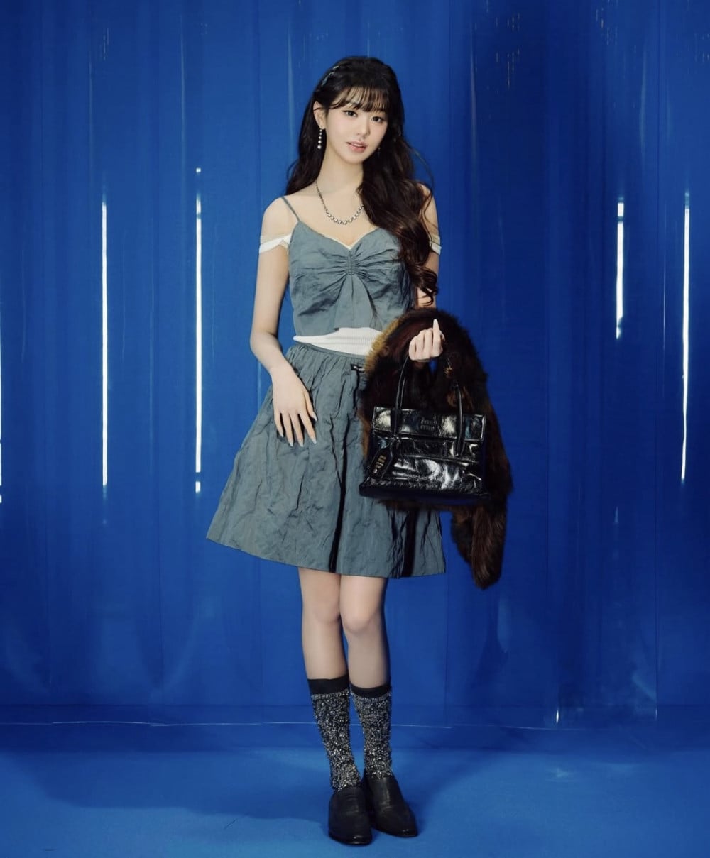 Jang Wonyoung captivated attendees in a chic two-piece set paired with a shearling fur stole, completing her sophisticated look with a solitaire-gloss leather handbag—a piece defined by its structured silhouette and refined details.