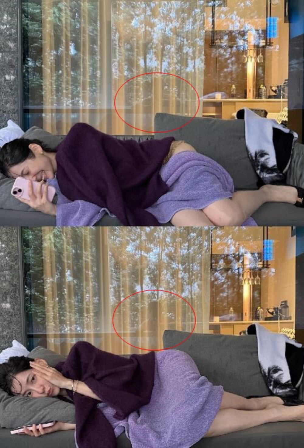 The rumors began after Park Ji Hyun shared several photos on her social media on October 9 with the caption, “A fully packed holiday.” In one of the photos, she was seen lying on a small sofa covered with a towel, while a faint male silhouette was reflected in the window behind her, which sparked curiosity and speculation among some online users.