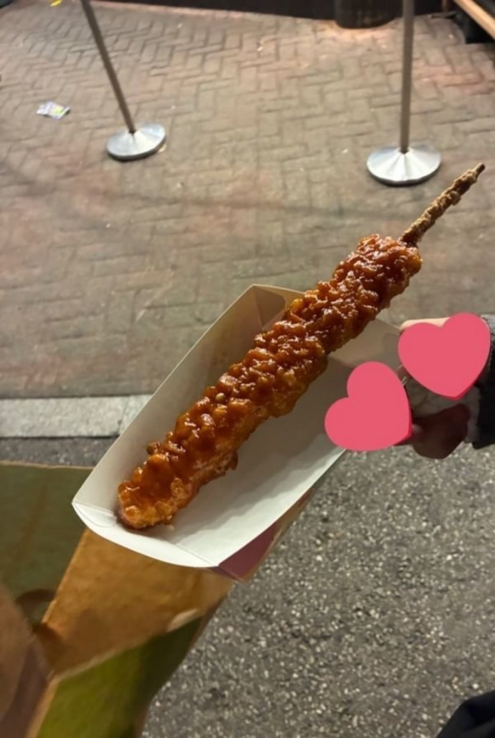 “My friend ran into KickFlip at Everland, and when they told Juwang that their friend was a fan, he thanked them and handed over a fishcake skewer (hot bar) before walking away.”
