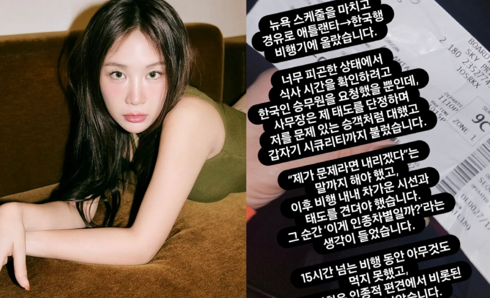 According to her post, Soyou was exhausted and asked for a Korean flight attendant to check her meal schedule. However, during this process, the cabin manager allegedly treated her like a problematic passenger and even called in security personnel.