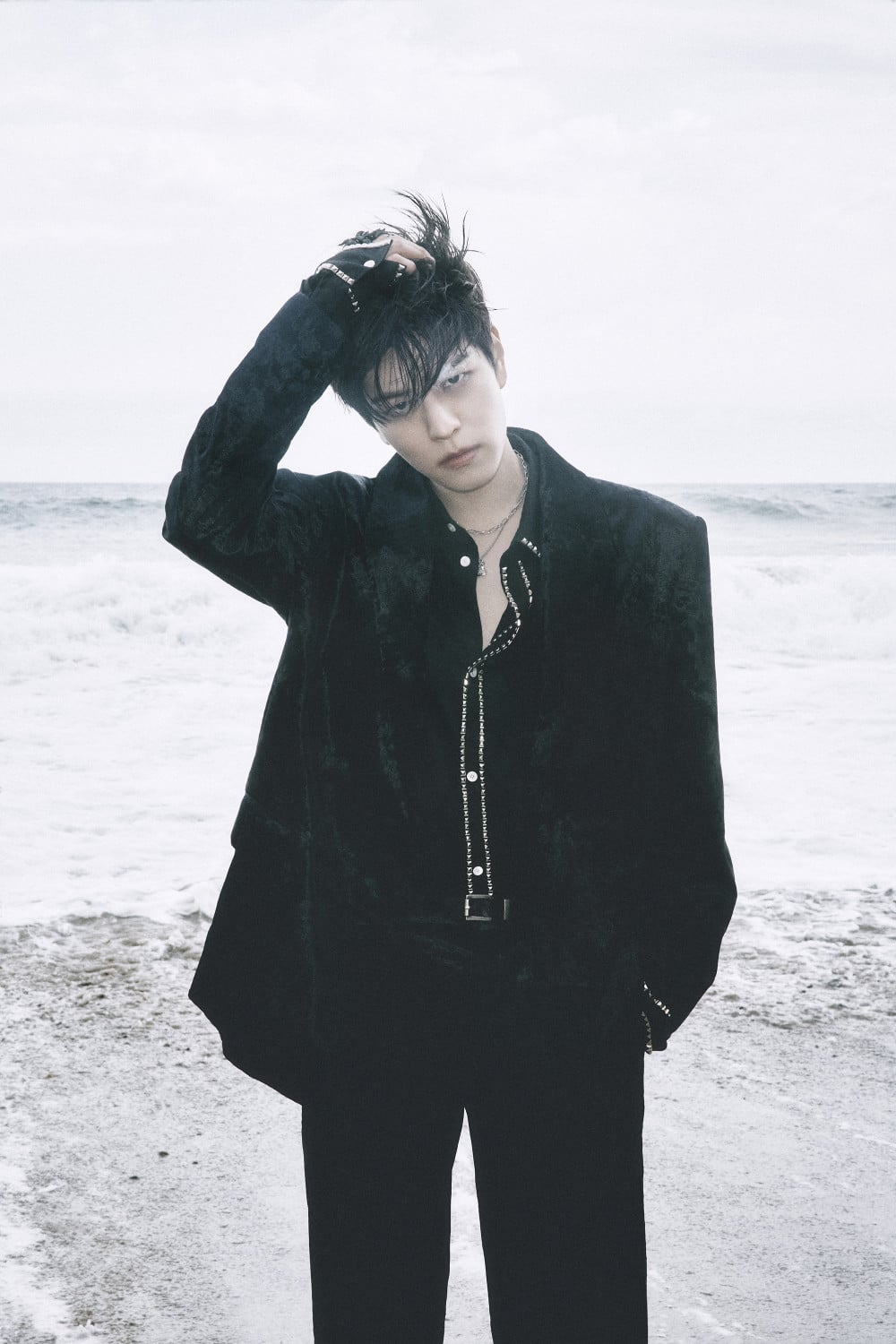 commanding presence. Dressed in elegant all-black outfits, Seungmin and