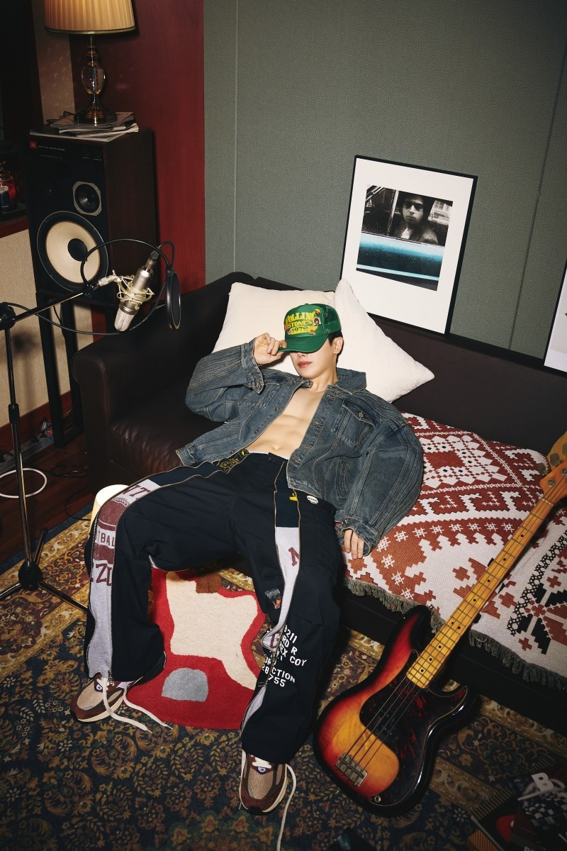 On October 22, Highline Entertainment released the third concept photo for Wonho's first full-length album 'SYNDOME' through its official media accounts. In the images, Wonho poses in a room filled with musical equipment such as a microphone, speakers, and guitars, captivating attention with his sharp jawline.