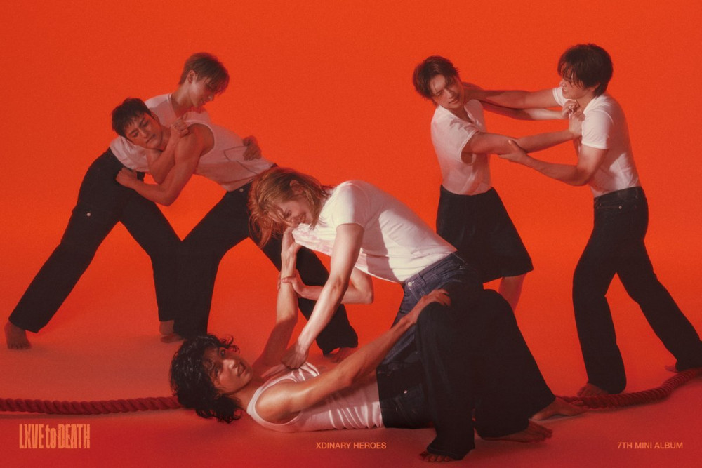 The members of Xdinary Heroes got into a classic, rock band-style brawl in a new teaser image for their 7th mini album, 'LXVE to DEATH'.