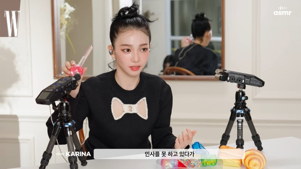 In a video released on November 25 on the YouTube channel W KOREA, titled “Why Did Aespa’s Karina Burst Into Laughter While Doing Makeup? Karina's ASMR is Moving in a Way”, Karina revealed her unique makeup techniques alongside entertaining experiences she had in the U.S.