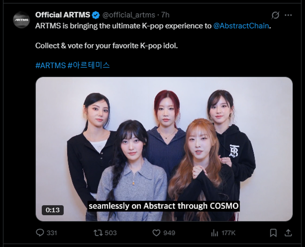 ARTMS has sparked controversy following the announcement of a collaboration with blockchain platform Abstract Chain, aimed at integrating fan voting and digital collectible features. The partnership, part of a broader Modhaus initiative launched in July 2025, was officially revealed around November 17–18.