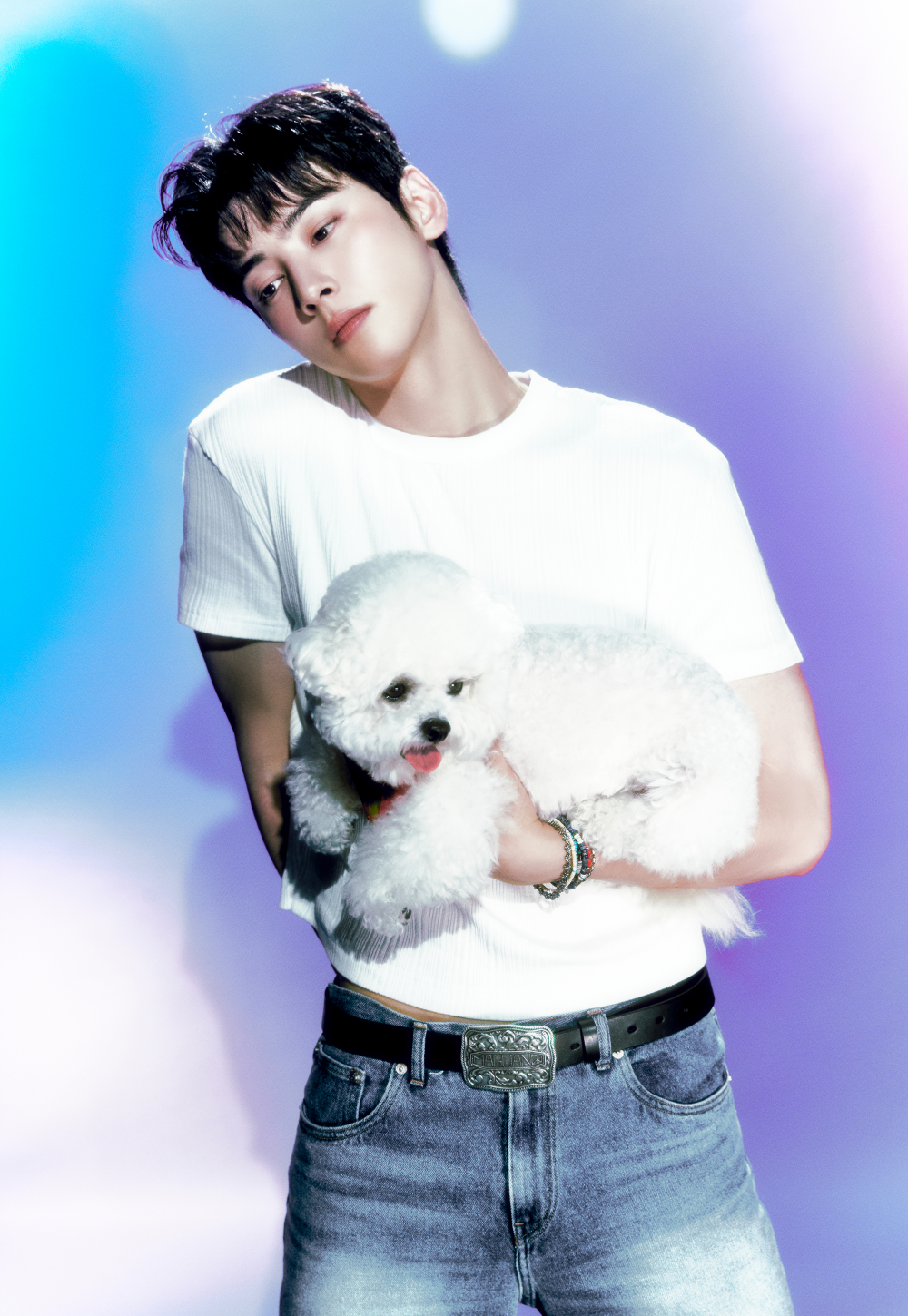 Cha Eun Woo has just dropped another set of concept photos for his second mini album, 'ELSE,' revealing another side of his personality. Well-known for his handsomeness and charisma, Cha Eun Woo showcases a charming and cute concept this time. The idol poses with a fluffy white dog and shows a softer version of his signature powerful visuals.
