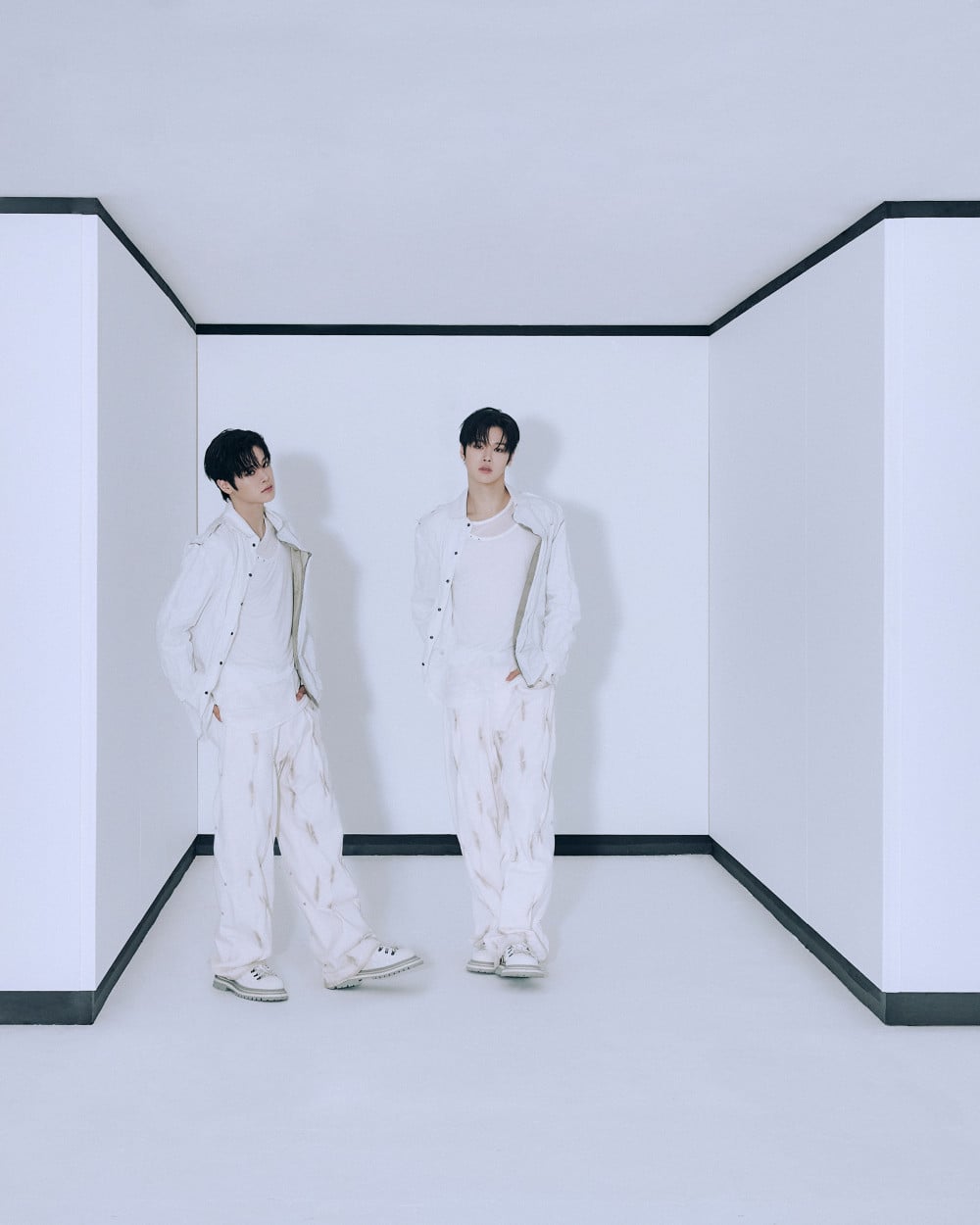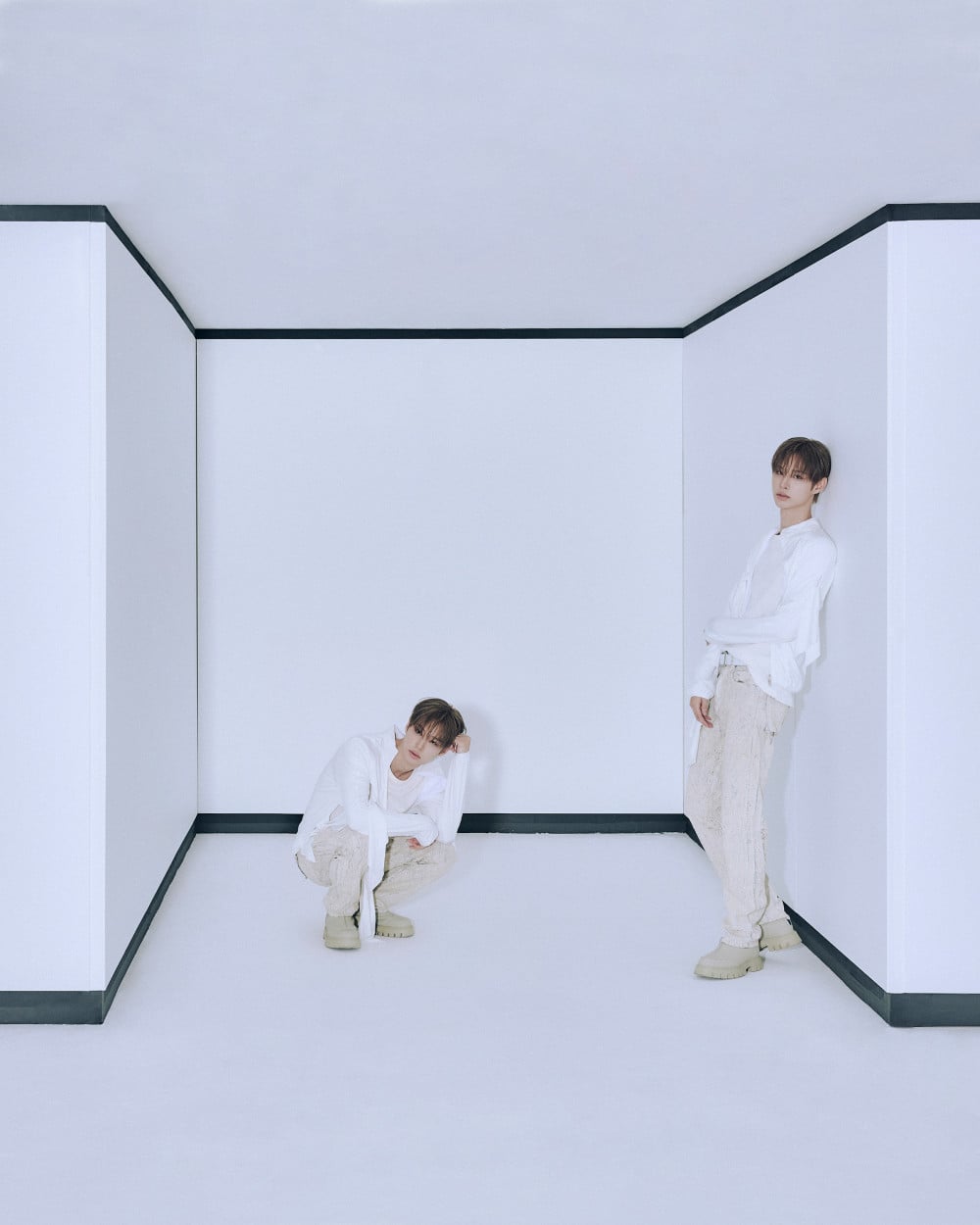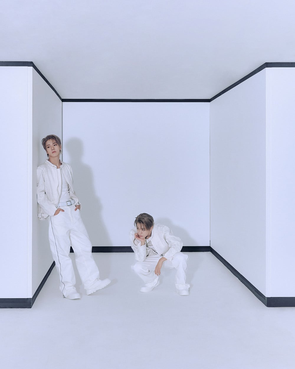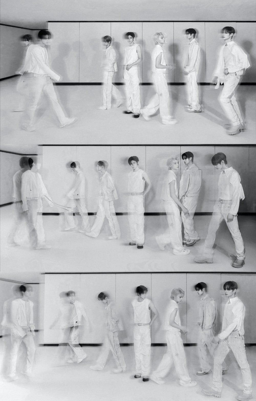 In the latest photos, the members donned on sleek, white and nude outfits from the MV for their upcoming title track, "X".